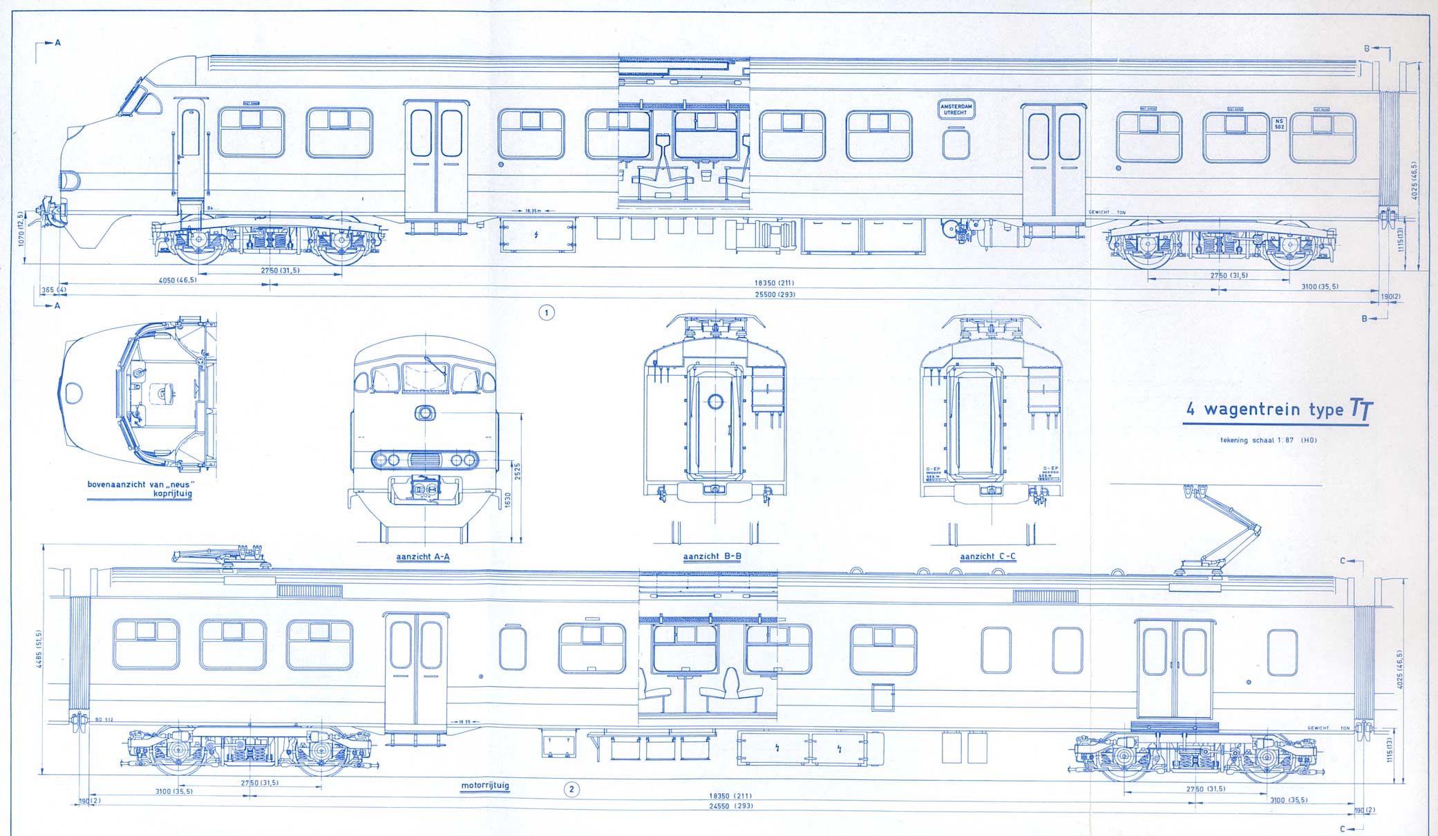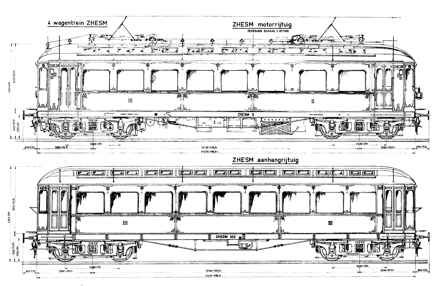 We waren van plan de aanzichten van de treinen te brengen en ook de plattegronden, maar dat kwam er eenvoudig niet uit. De tekenkamer bracht in recordtijd de tekeningen van trein TT op de plank en uw spoorwegredacteur belastte zich in een zwak moment met de ZHESM. Nu ben ik allerminst een tekenaar, al behoorde het tekenen wel
