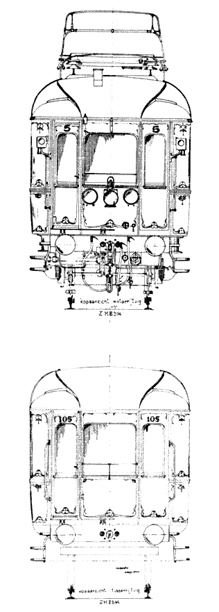 bij mijn opleiding, bovendien stonden mij slechts een snikheet weekend en een 3-tal avonden ter beschikking om de zaak op de plank te krijgen. Daarbij waren de schalen van motor- en aanhangrijtuig verschillend (1:20 en 1:10) en ontbraken van het laatste rijtuig enkele details. Ik hoop echter, dat u de goede bedoeling wilt appreciëren, u kunt verbeterde tekeningen apart krijgen, mits u ons daarvoor de tijd geeft.